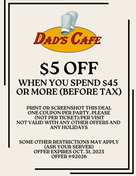 Dad's Cafe has been serving the East Bay since 2010. We make an effort to deliver the most delicious food on this side of the hemisphere. Whether you’re dropping by for a hearty meal or a morning cup of hot coffee, we guarantee we have something tasty for you and the whole family. Come on by and be sure to bring your appetite.